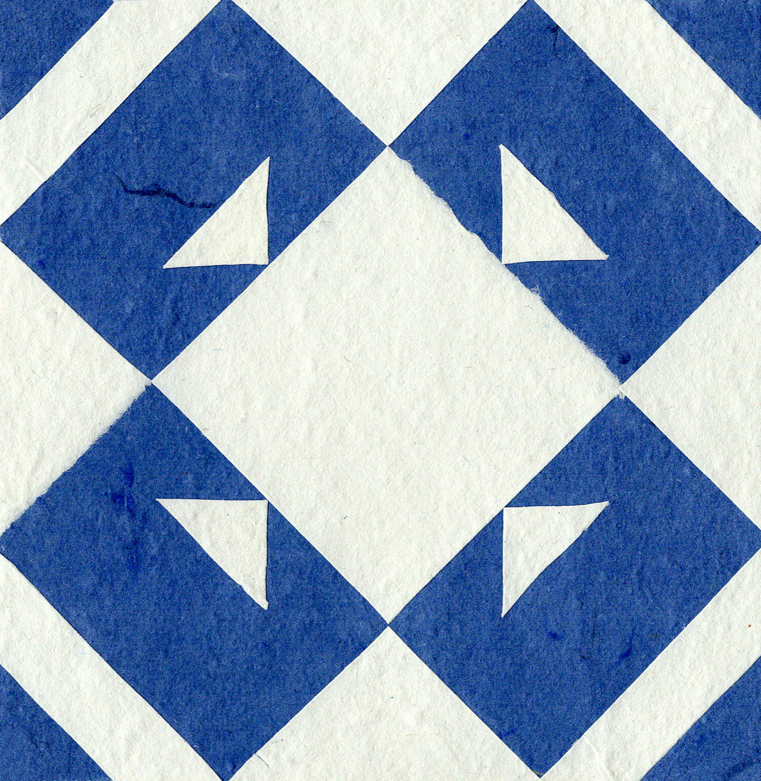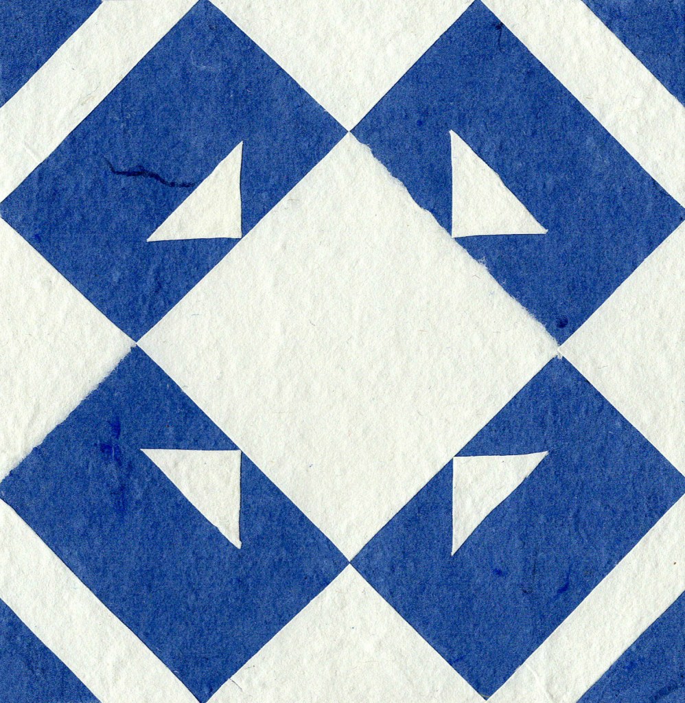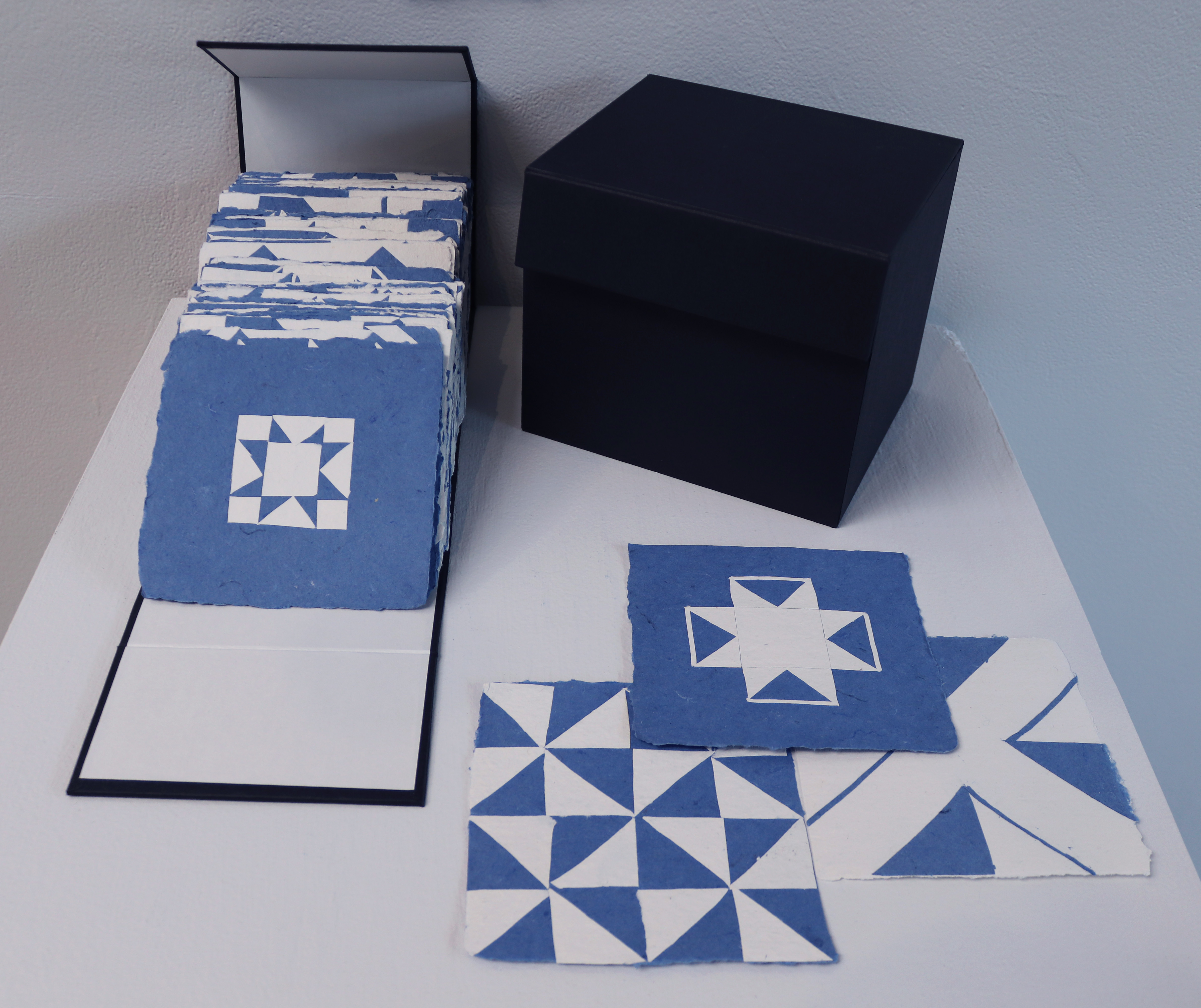 Inherited Recipes, 2024, 5″ x 5″ blocks, ~220 handmade paper quilt blocks from recycled fabric, weaving yarn and paper