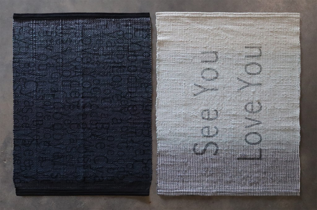 Better to Leave Than be Left – See You Love You, 4′ x 3,’ relief prints on handwoven cotton and wool